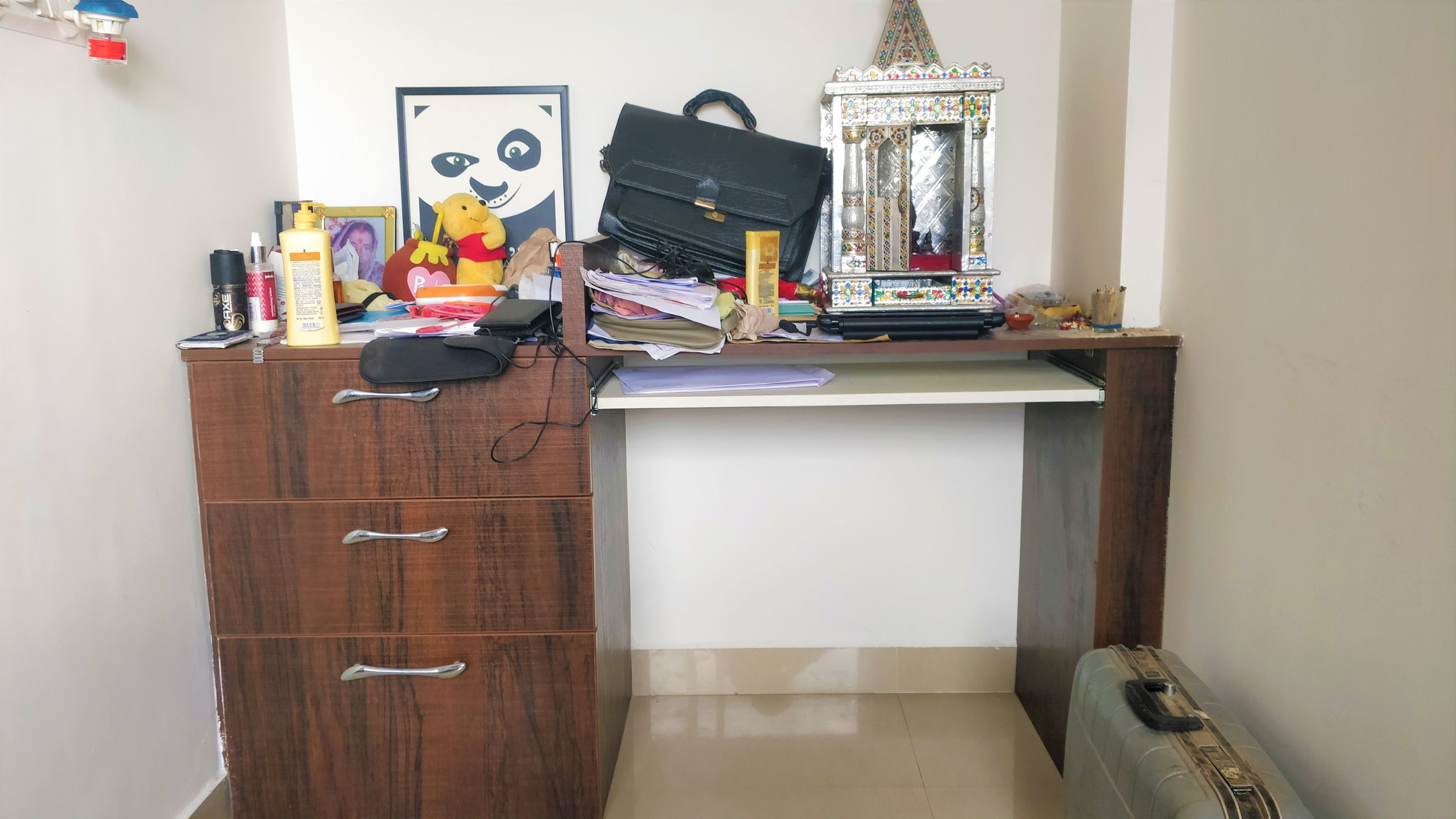 It is a Semi Furnished room with a Table, Chair and a bed. There is an attached bathroom, and a complete private space.